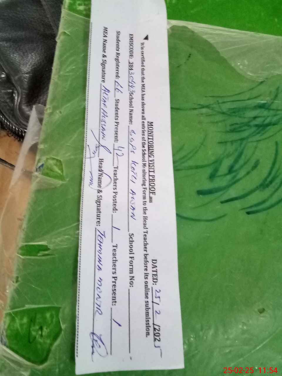 | Attendance Register | Head Teacher | MEA with School | Visit Proof |