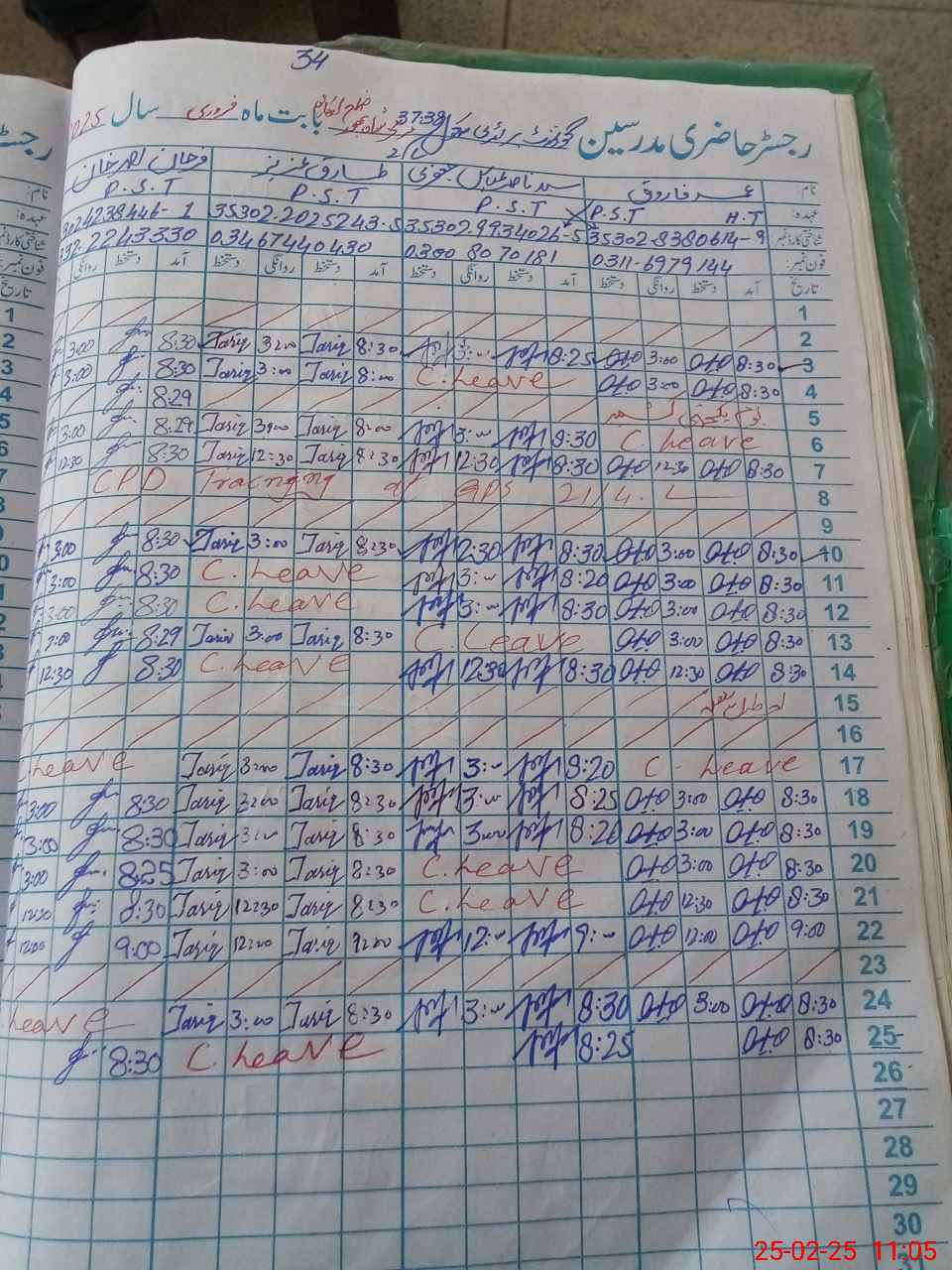 | CNIC | Full Name | Designation | R/C | Absence during last cal. month |