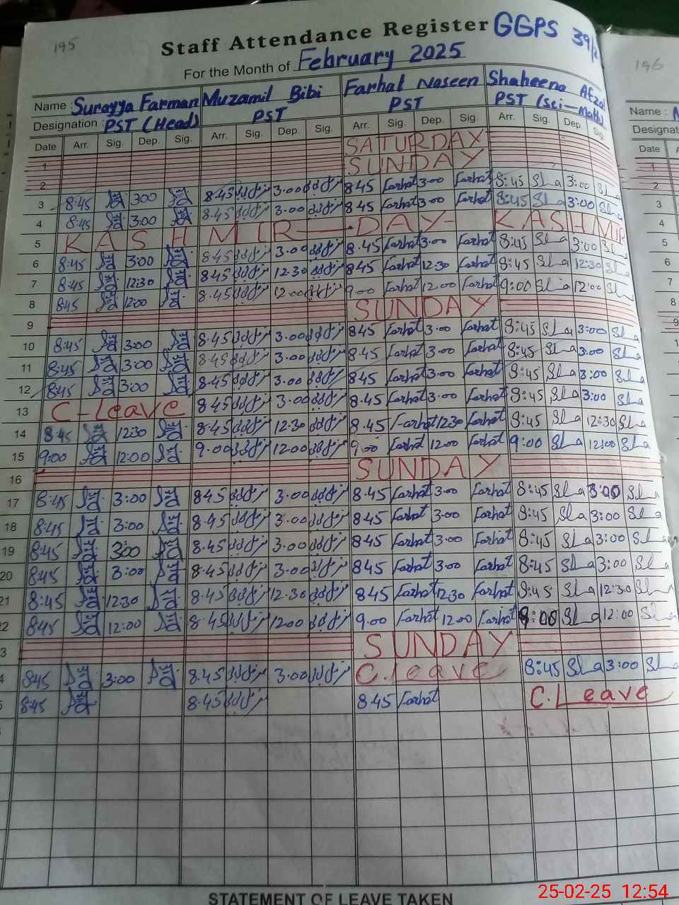 | Leave | Duty | Absent | Maternity | Medical | Ex- Pak |
