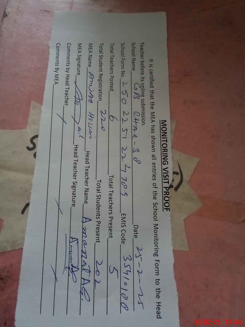 | EMIS Code: 35410188 | Name of School: GPS CHAK NO. 38 FEROZWALA | |||