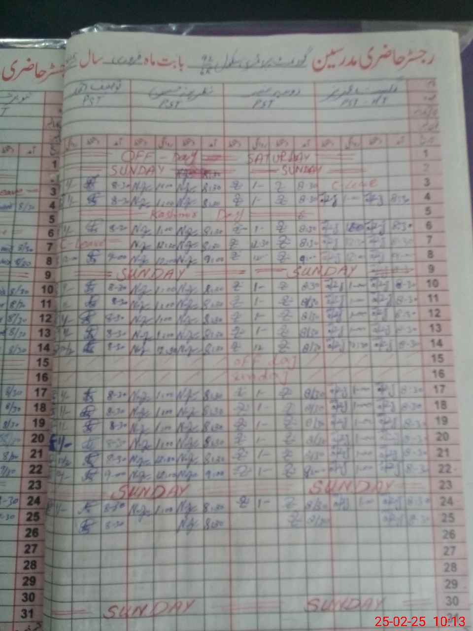 | CNIC | Full Name | Designation | R/C | Absence During Last Calender Month |