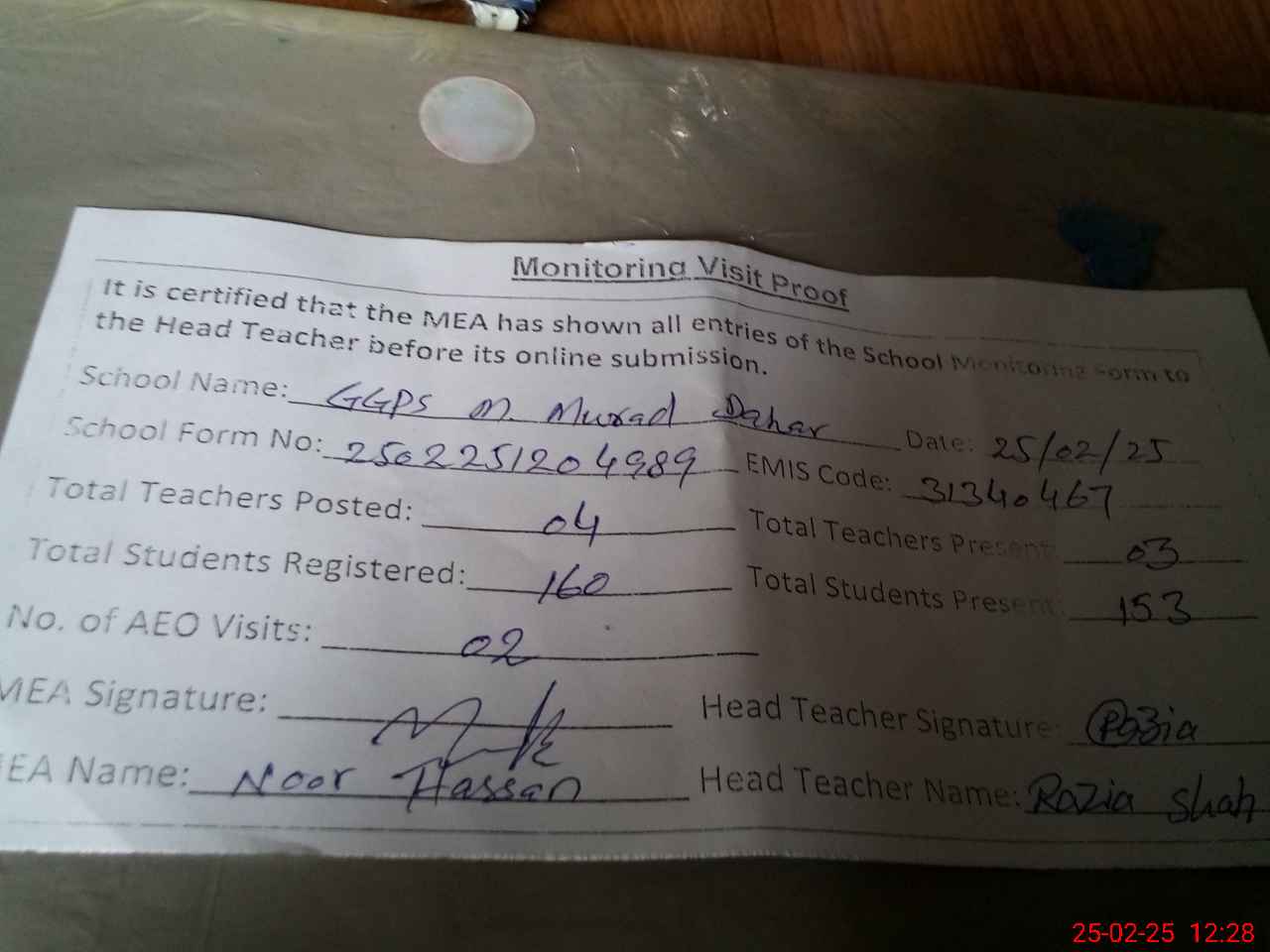 | EMIS Code: 31340467 | Name of School: GGPS MUHAMMAD MURAD DAHAR | |||