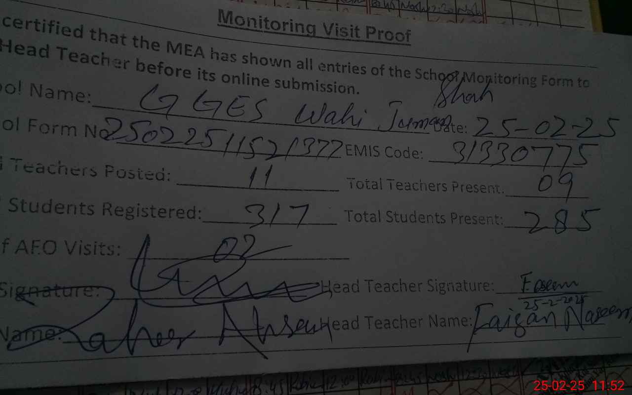 | EMIS Code: 31330775 | Name of School: GGES WAHI JUMAN SHAH | |||