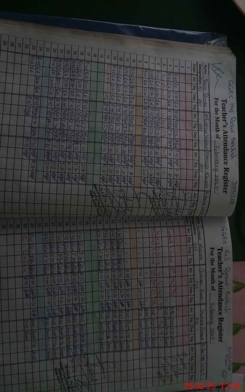 | Total no. of Classrooms: 11 No. of Classrooms Used for Teaching: 9 No. of Classrooms Storing Old Furniture, FTBs, etc: 0Comments if Any: Sir teachers and staff attendence on sis not carried out |