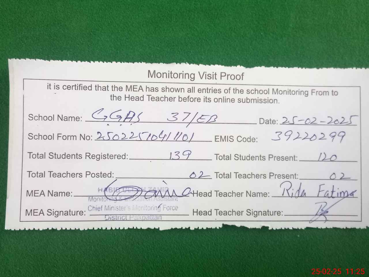 | EMIS Code: 39220299 | Name of School: GGPS 37 EB | |||