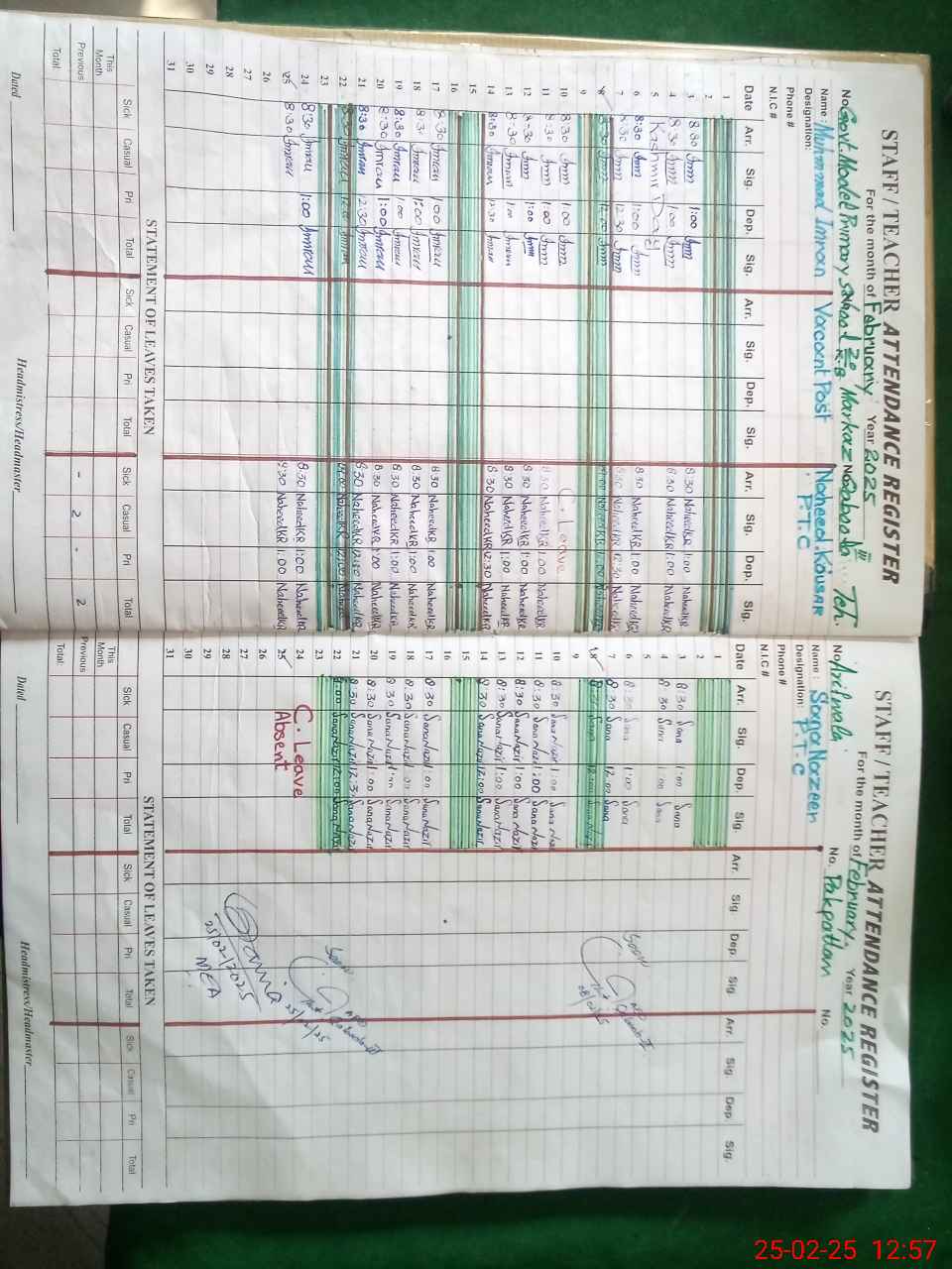 | CNIC | Full Name | Designation | R/C | Absence During Last Calender Month |