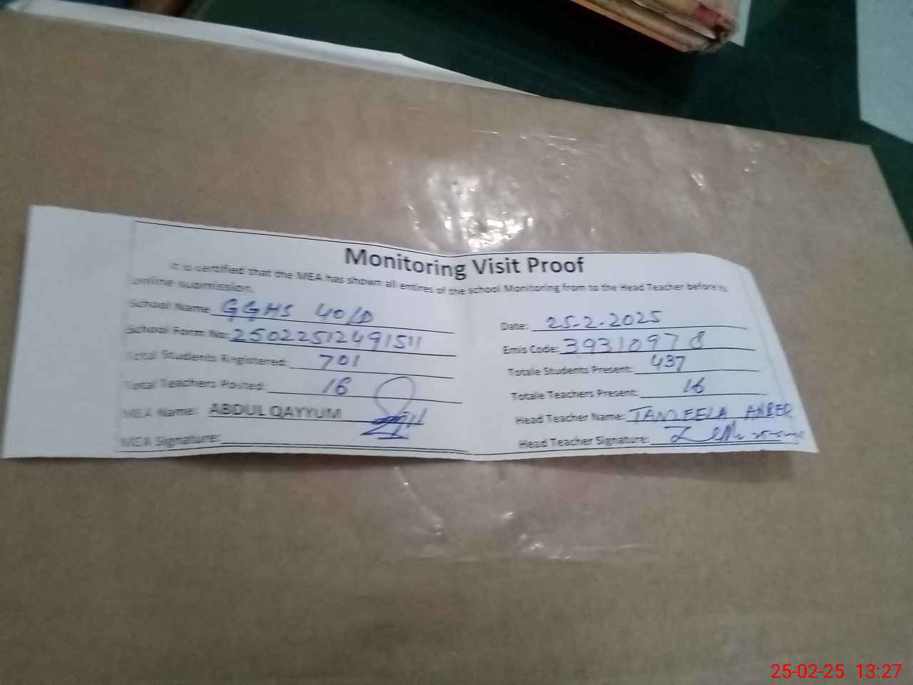 | EMIS Code: 39310978 | Name of School: GGHS CHAK NO. 40/D DEPALPUR | |||