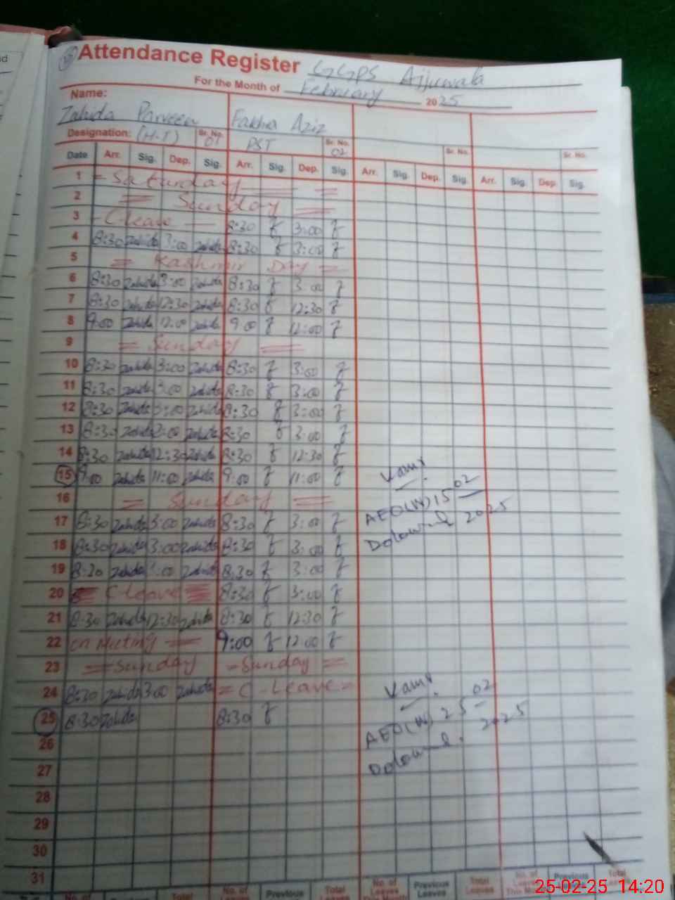 | CNIC | Full Name | Designation | R/C | Absence During Last Calender Month |