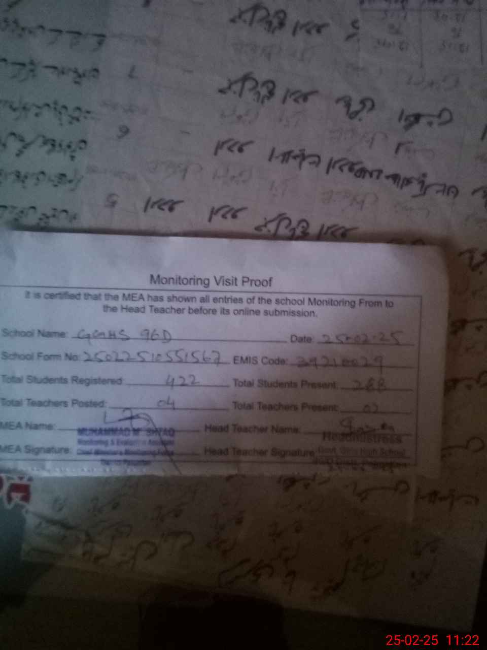 | EMIS Code: 39210029 | Name of School: GGHS CHAK NO. 96 D | |||
