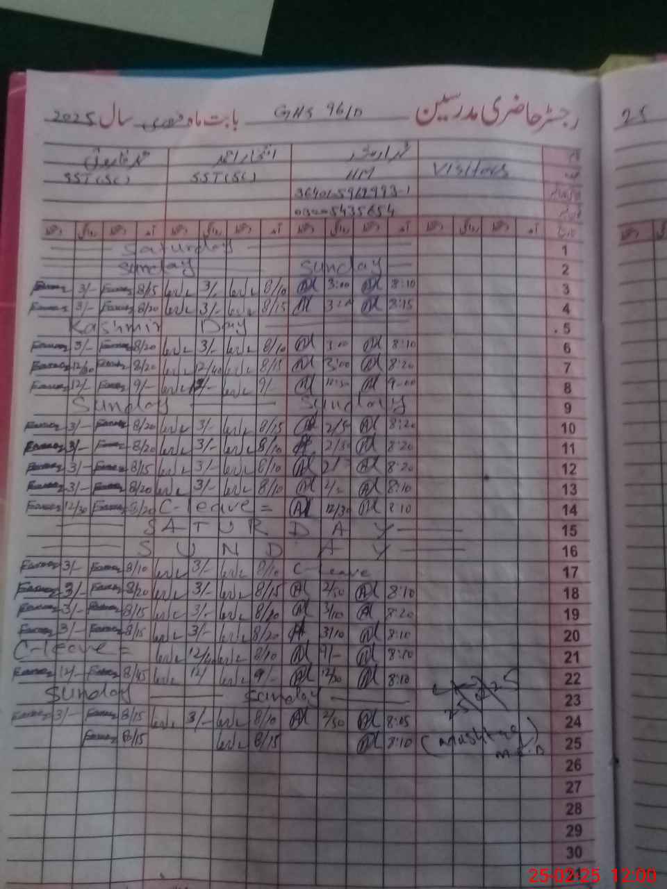 | Name: Mu**** Ar**** Designation: (School Headmaster's/Headmistress's) SST Phone/Cell Number: 03**** |
