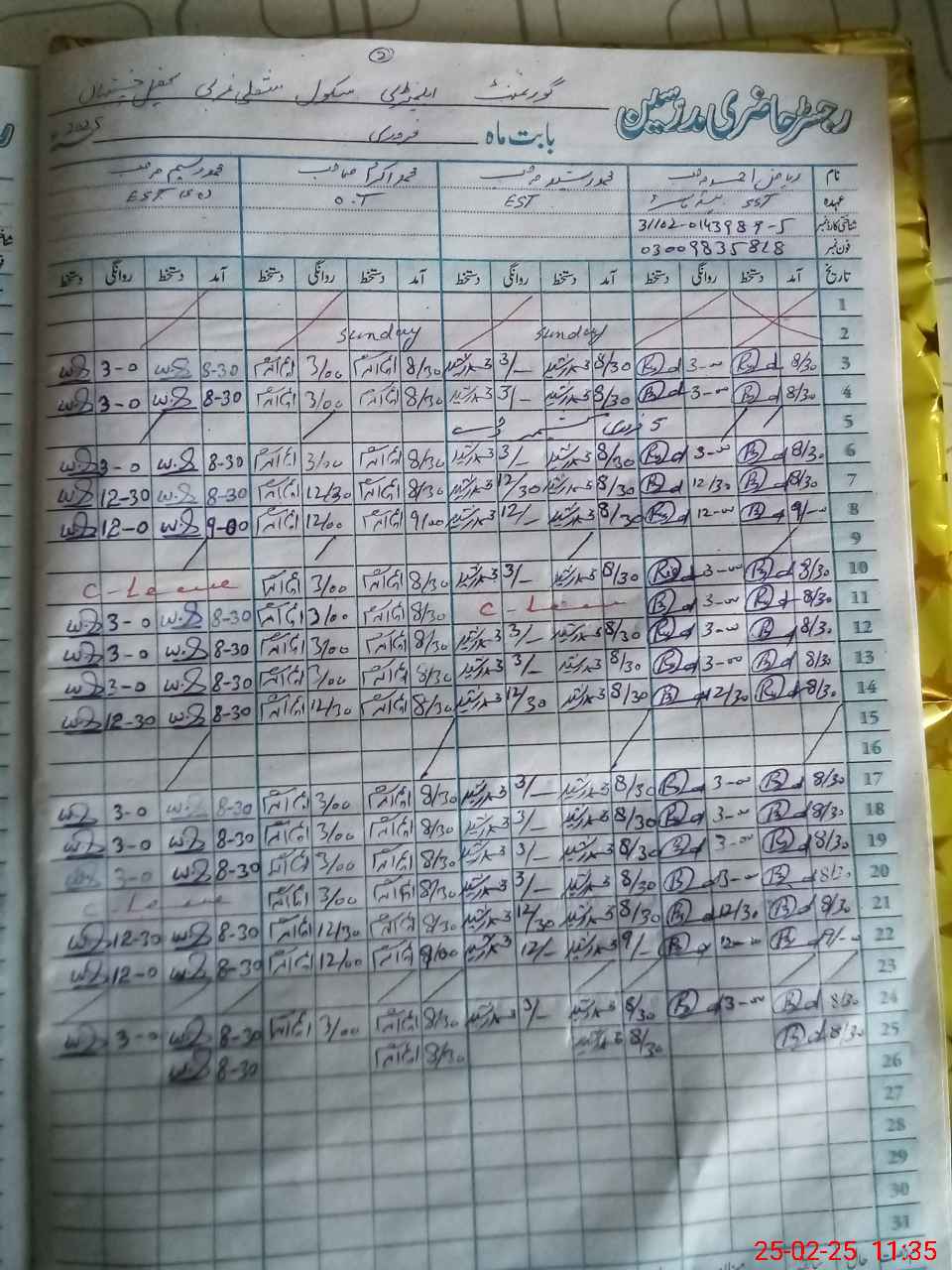 | Name: MAk**** Designation: (School Headmaster's/Headmistress's) EST OT Phone/Cell Number: 03**** |