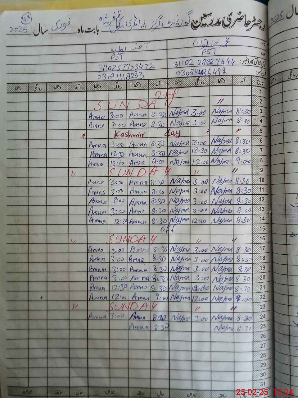 | Name: NA**** KH**** Designation: (School Headmaster's/Headmistress's) PST ARTS Phone/Cell Number: 03**** |