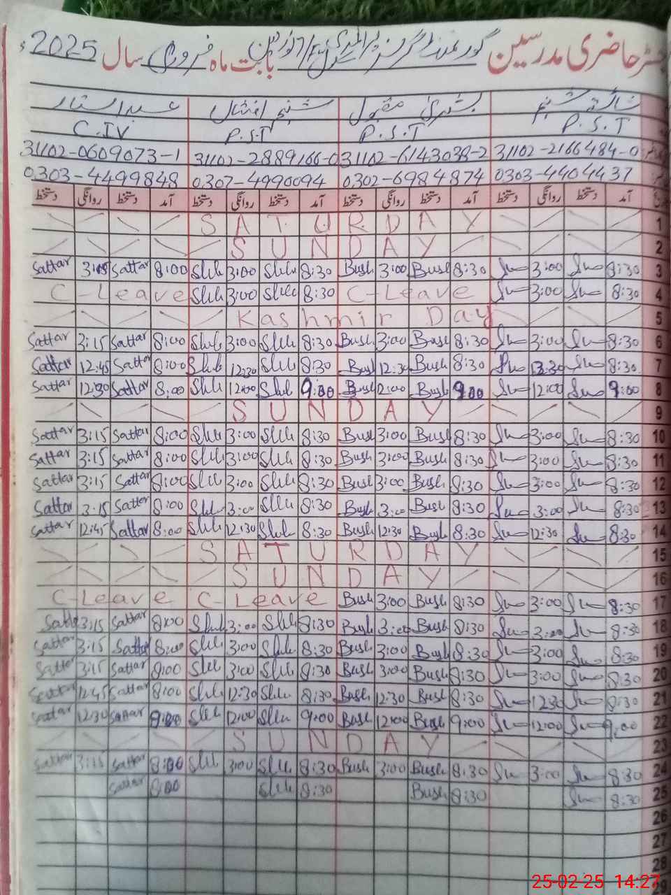 | CNIC | Full Name | Designation | R/C | Absence During Last Calender Month |