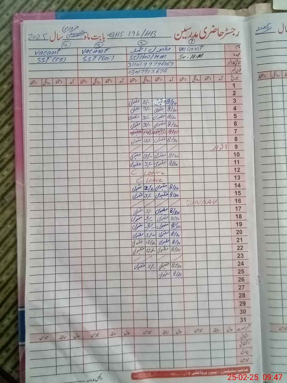 | Name: Ma**** Ah**** Designation: (School Headmaster's/Headmistress's) S.S.T.sc Phone/Cell Number: 03**** |