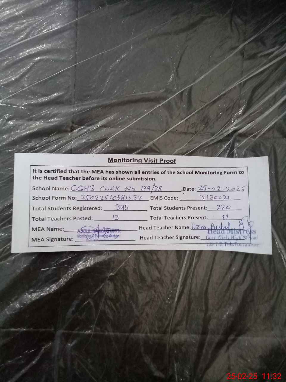 | EMIS Code: 31130021 | Name of School: GGHS CHAK NO.199/7-R | |||
