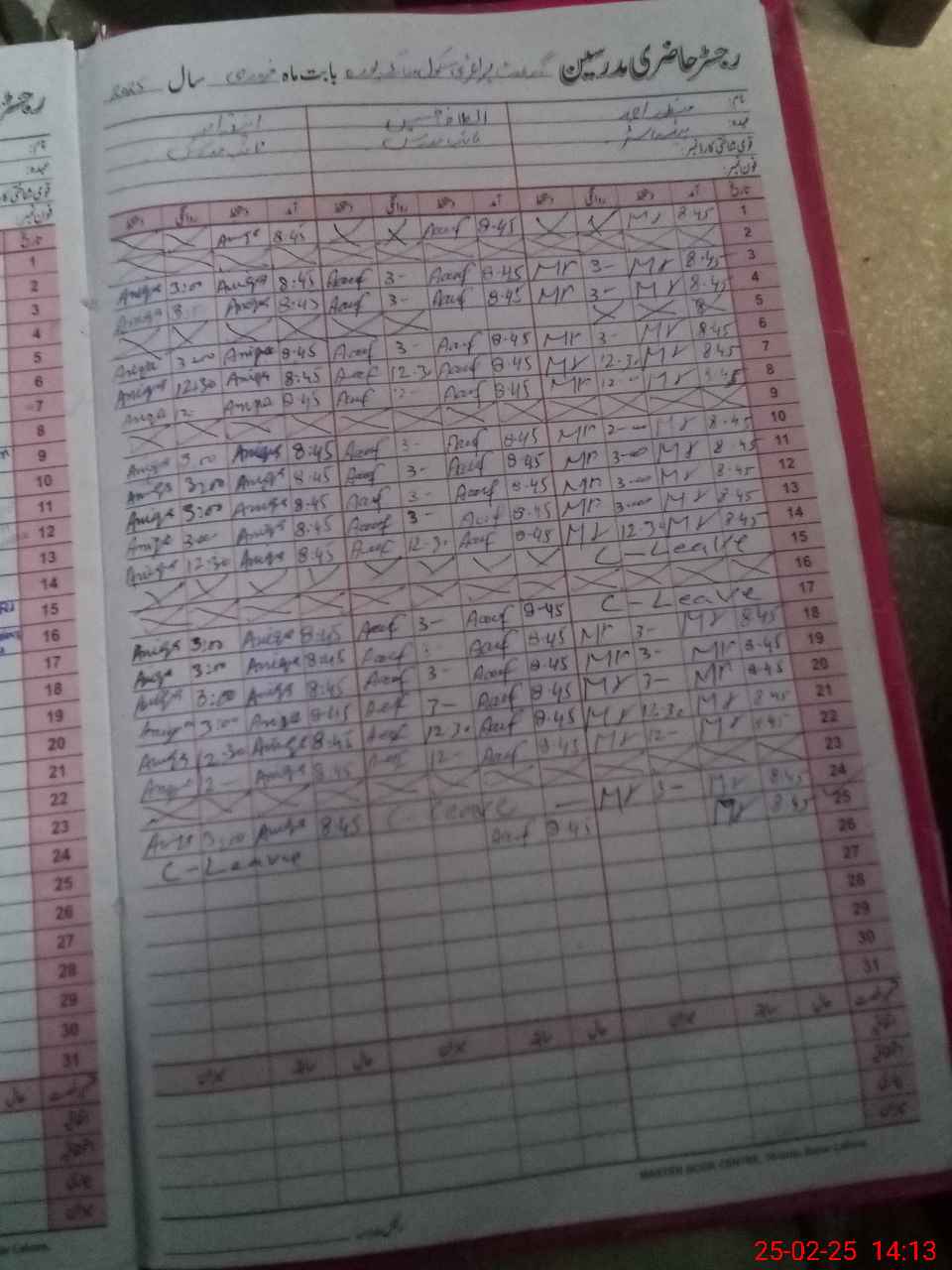 | CNIC | Full Name | Designation | R/C | Absence During Last Calender Month |