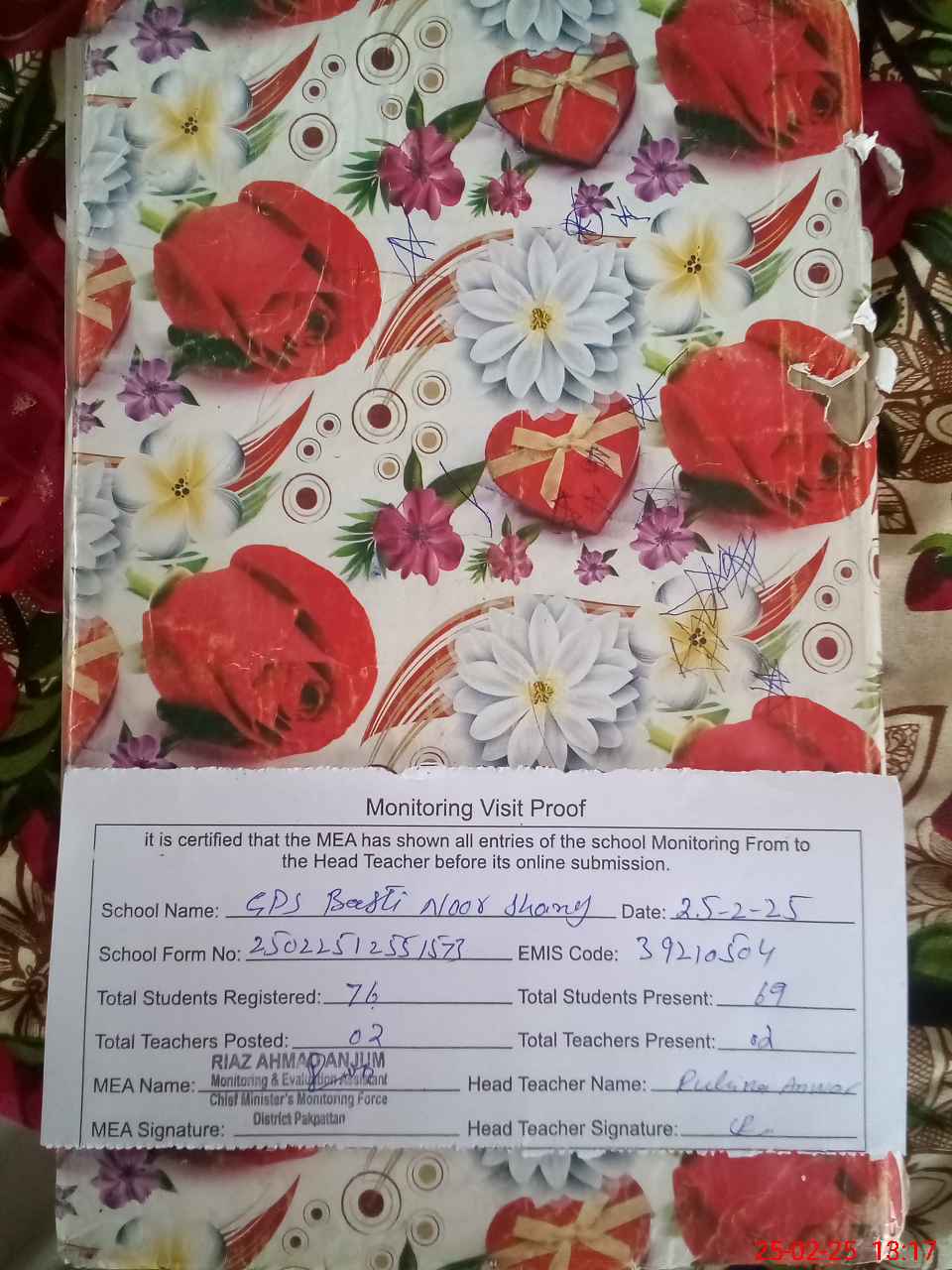 | Attendance Register | Head Teacher | MEA with School | Visit Proof |