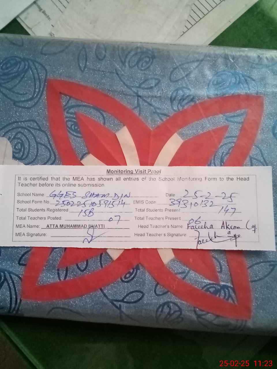 | EMIS Code: 39310132 | Name of School: GGES SHAM DIN | |||