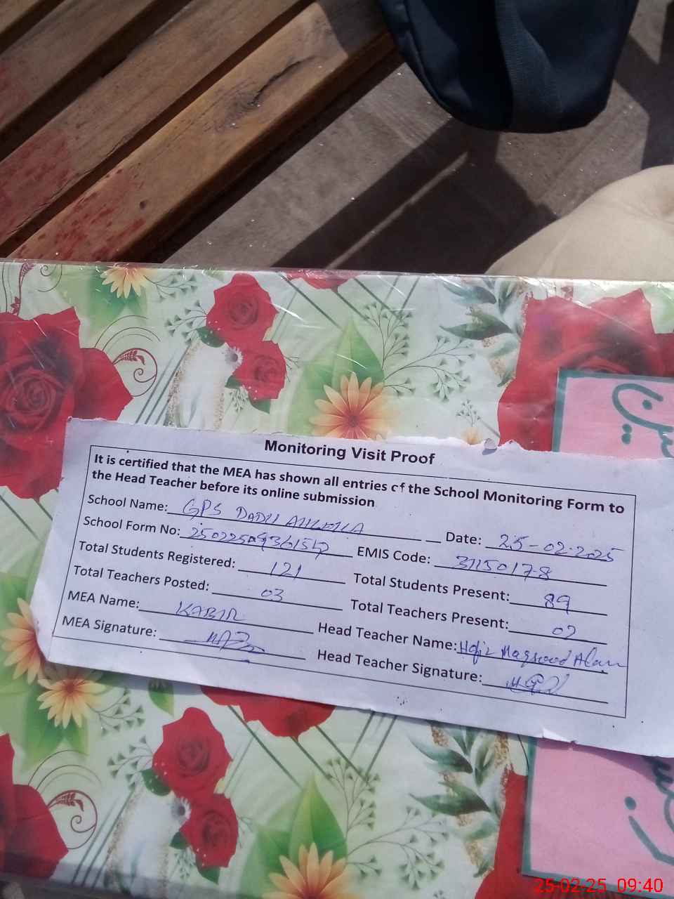 | EMIS Code: 31150178 | Name of School: GPS DADU AHLOKA | |||