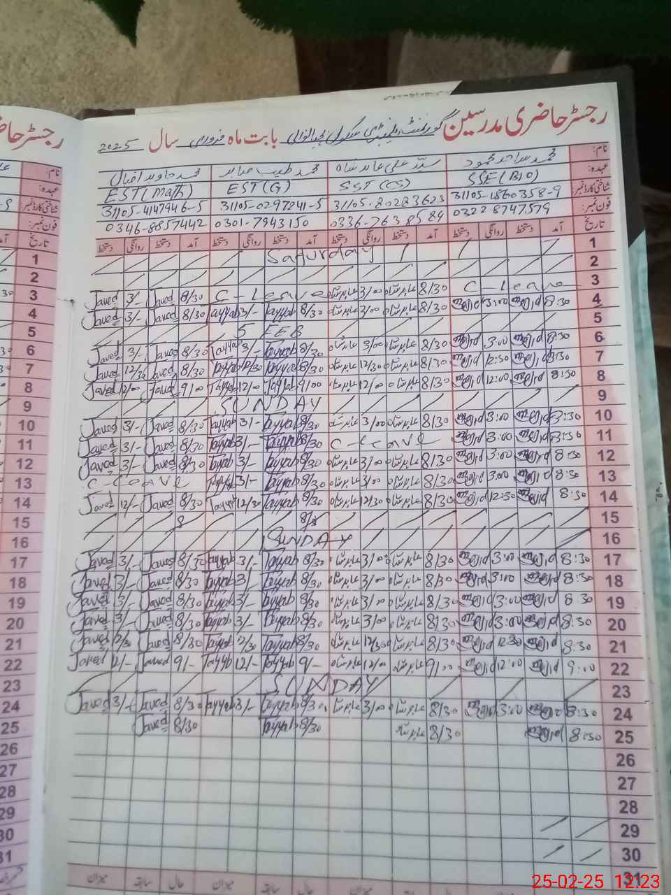 | Name: Sy**** Al**** Ab**** Sh**** Designation: (School Headmaster's/Headmistress's) Sst Phone/Cell Number: 03**** |