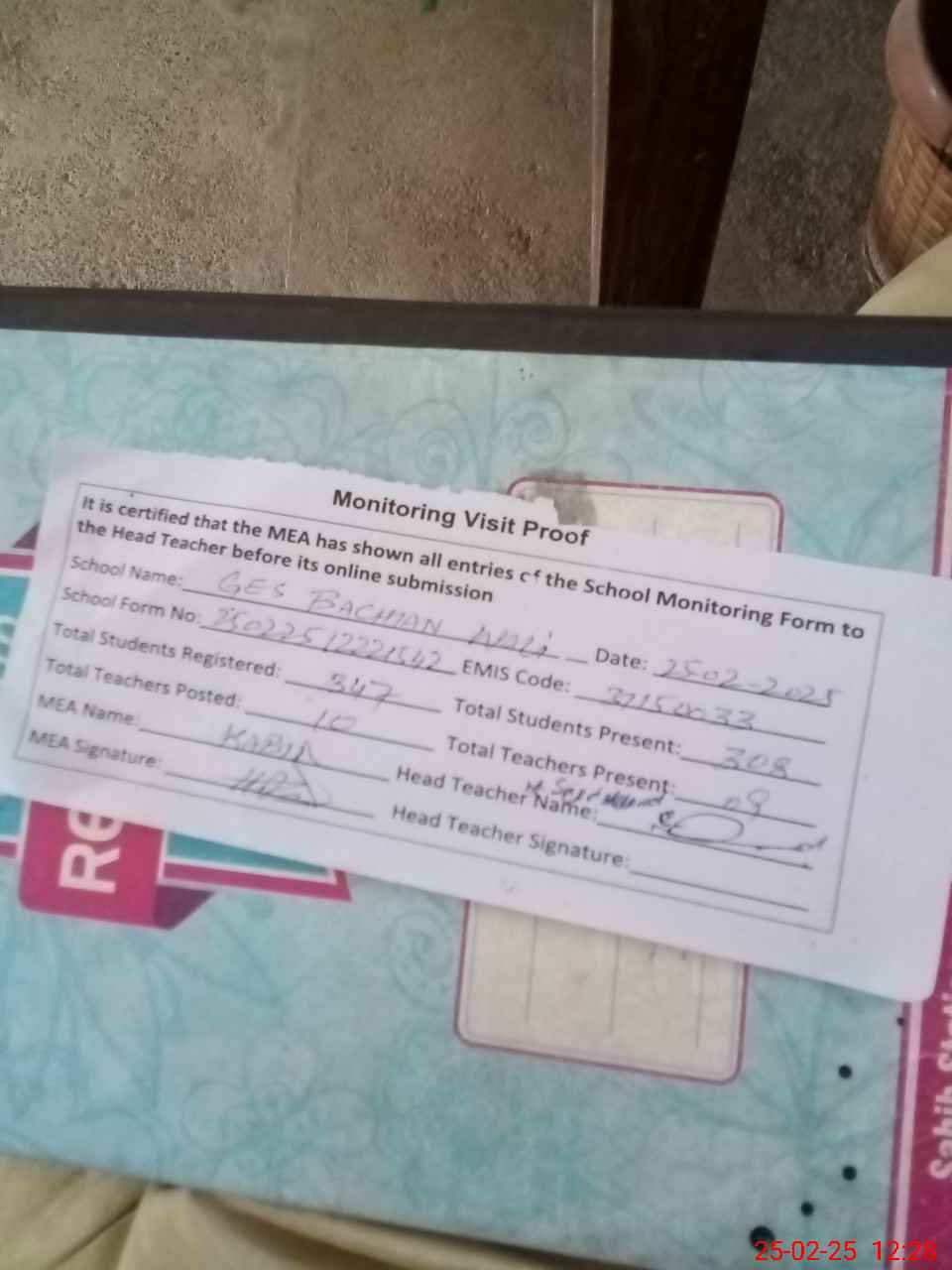 | EMIS Code: 31150033 | Name of School: GES BACHIAN WALI | |||