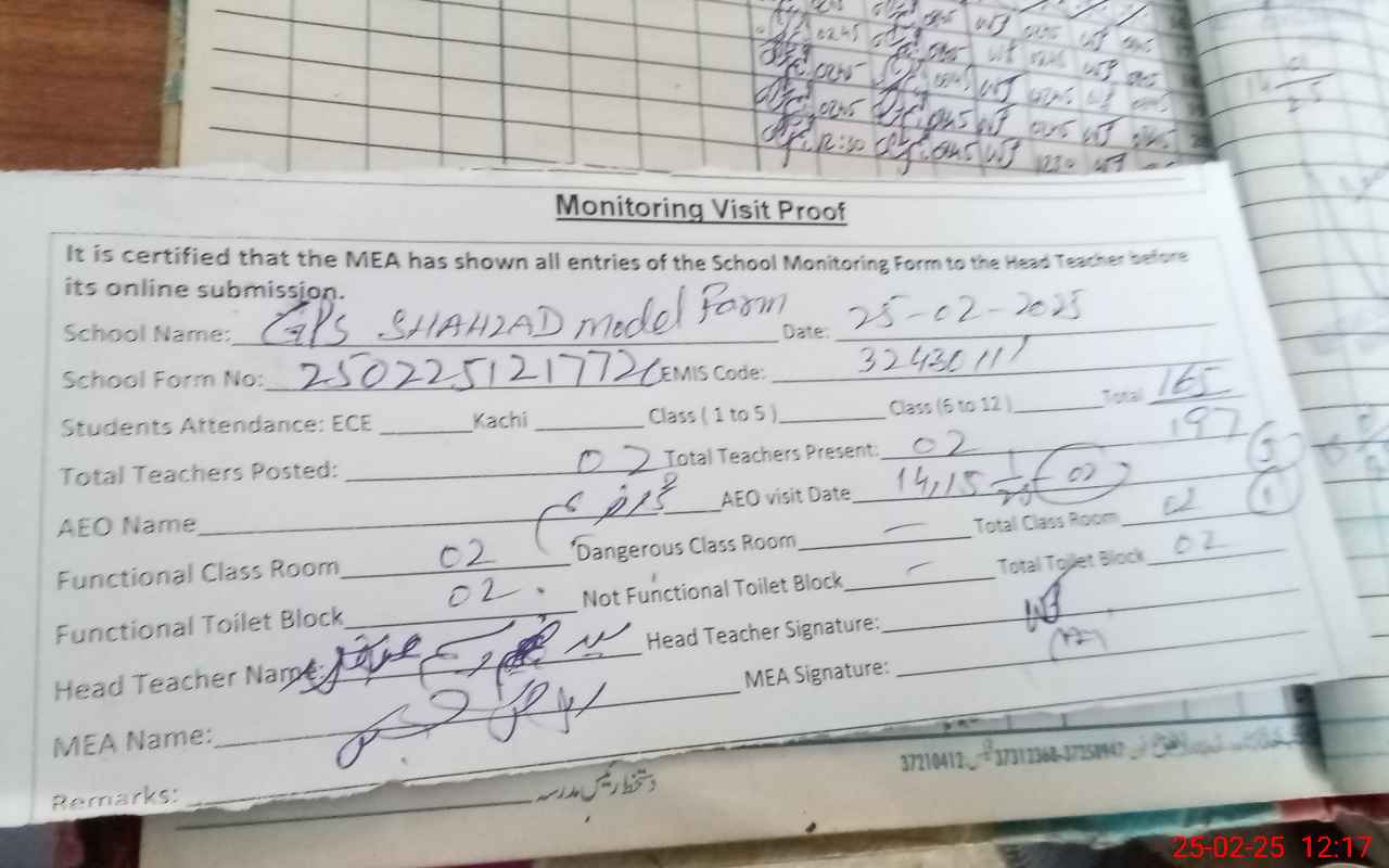 | EMIS Code: 32430111 | Name of School: GPS SHAHZAD MODEL FARM | |||