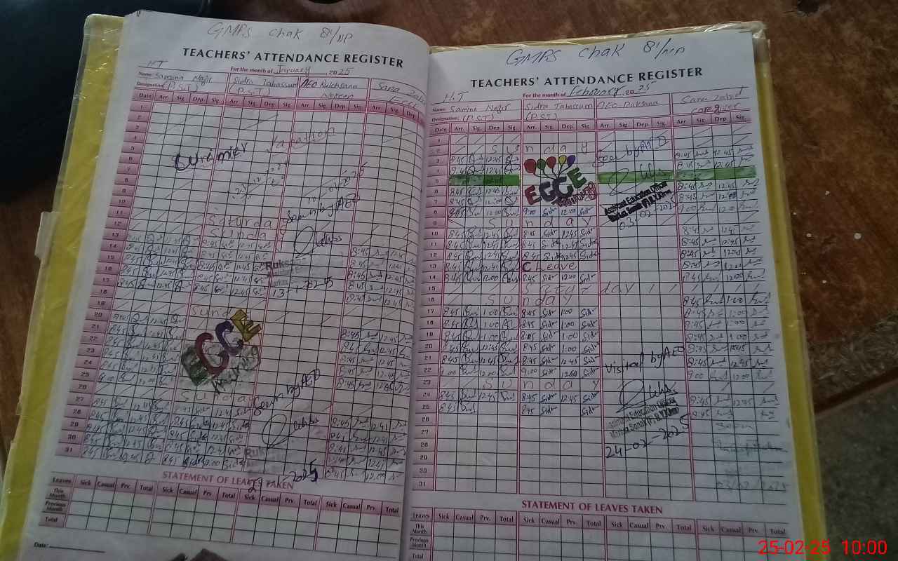 | Attendance Register | Head Teacher | MEA with School | Visit Proof |