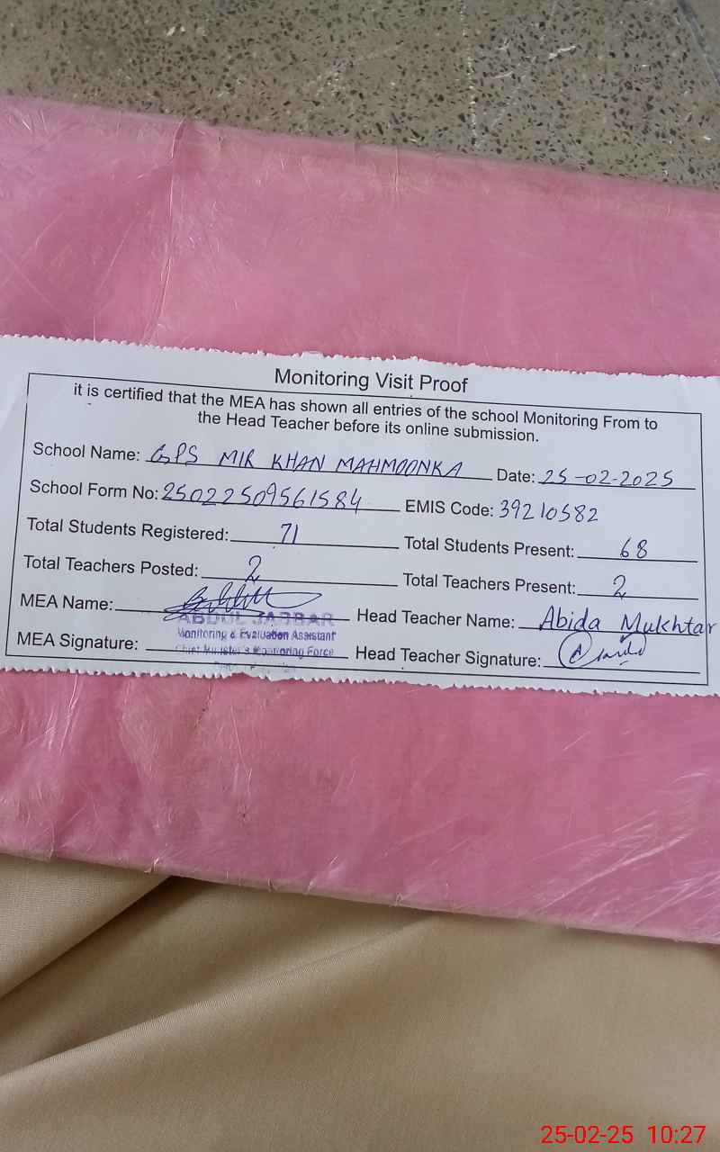 | EMIS Code: 39210582 | Name of School: GGPS MIR KHAN MAHMOONKA | |||