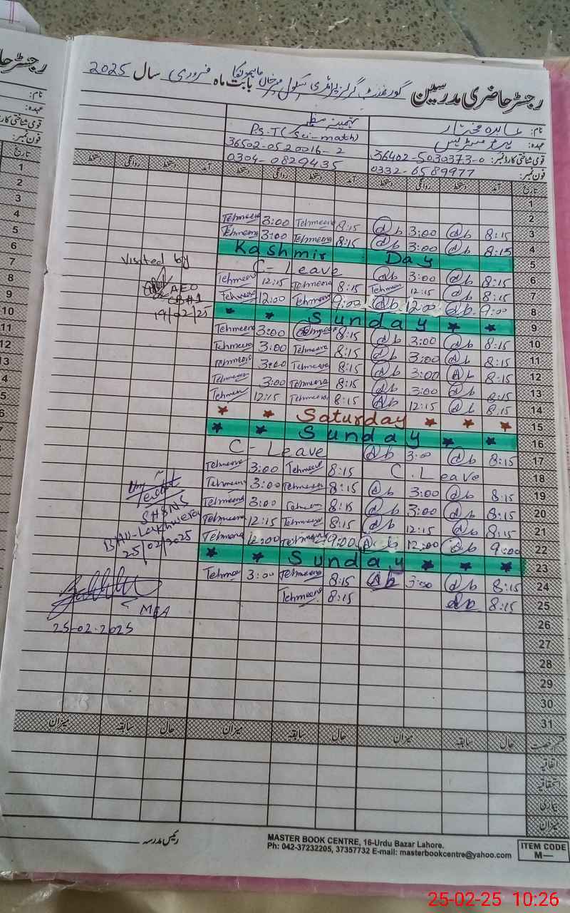 | Name: Ab**** Mu**** Designation: (School Headmaster's/Headmistress's) PST Phone/Cell Number: 03**** |