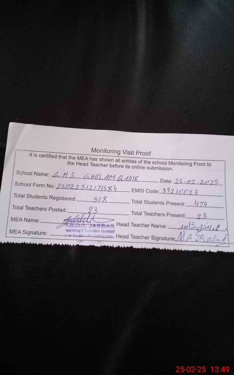 | EMIS Code: 39210023 | Name of School: GHS GHULAM QADIR | |||