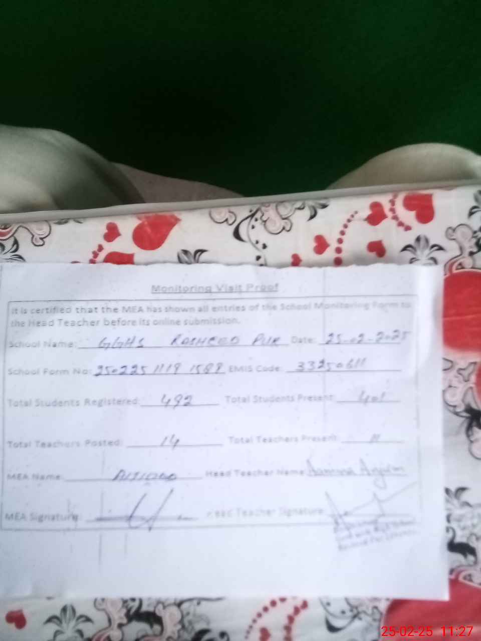 | EMIS Code: 33250611 | Name of School: GGHS RASHEED PUR | |||