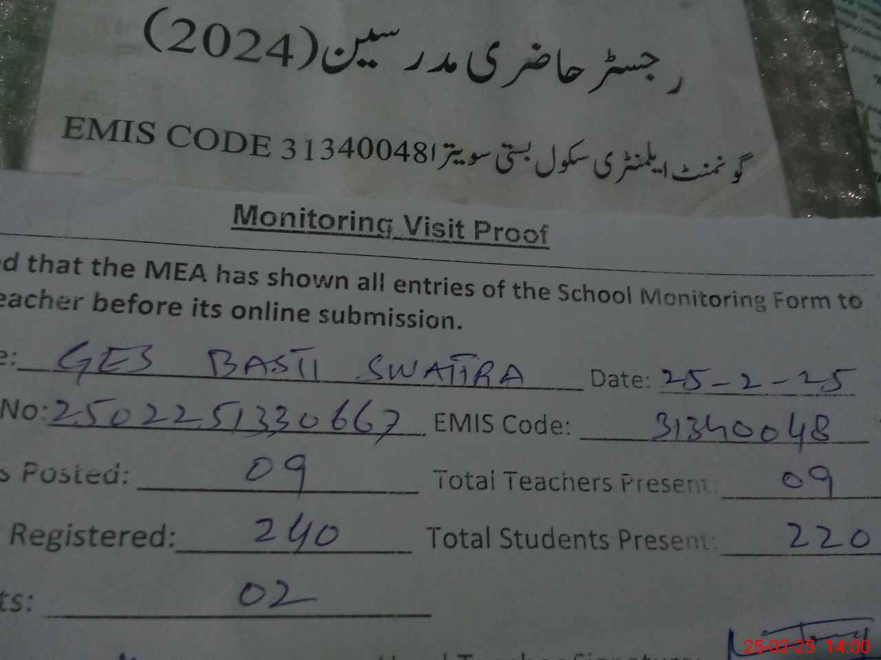 | EMIS Code: 31340048 | Name of School: GES BASTI SWAITRA | |||