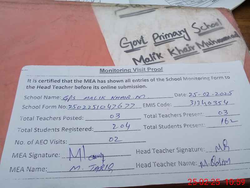 | EMIS Code: 31340354 | Name of School: GPS MALIK KHAIR MUHAMMAD | |||