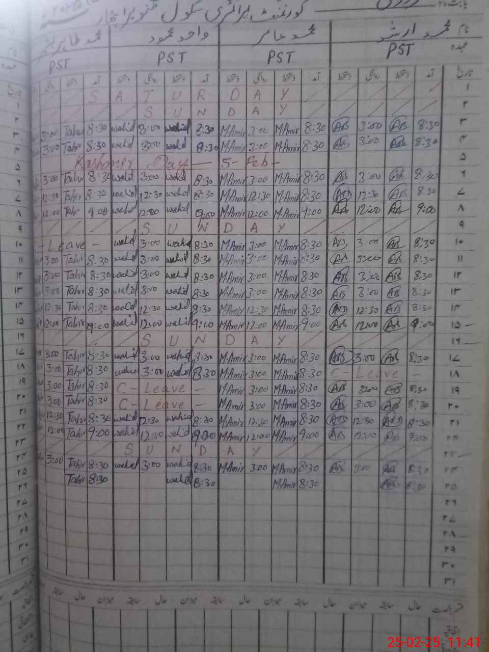| CNIC | Full Name | Designation | R/C | Absence During Last Calender Month |