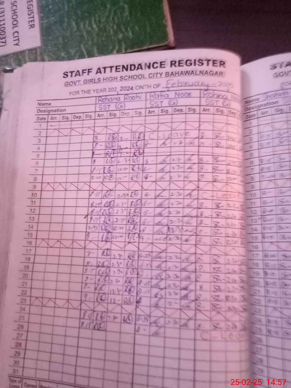 | CNIC | Full Name | Designation | R/C | Absence During Last Calender Month |