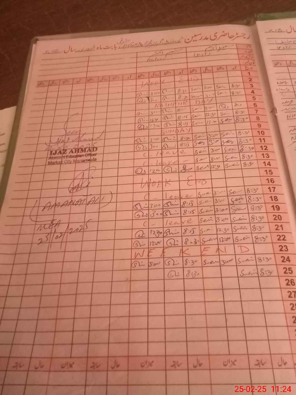 | CNIC | Full Name | Designation | R/C | Absence During Last Calender Month |