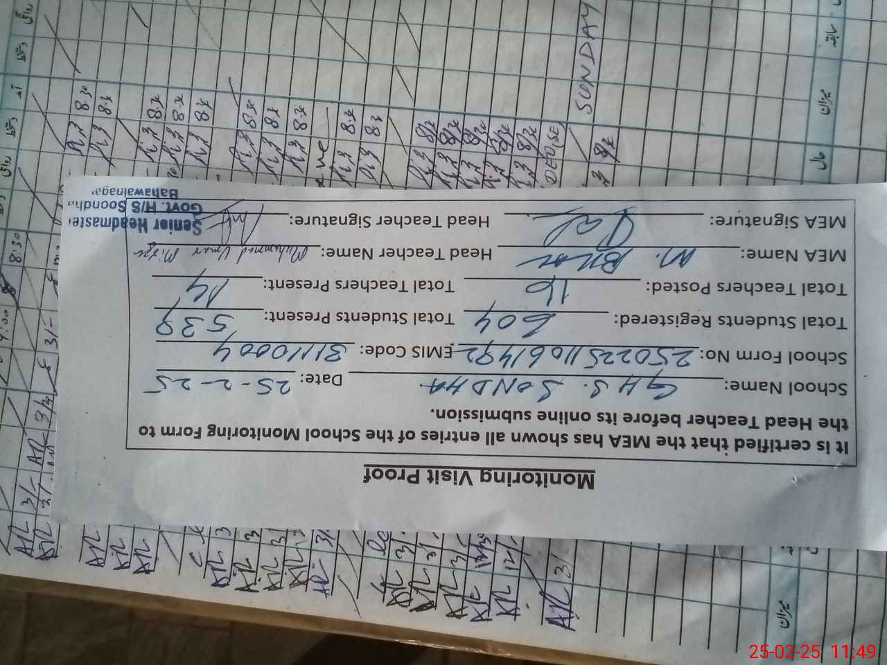 | Certified that this School was Inspected by the Undersigned MEA/DMO Today and the Information Stated Above is as Per Record. | |||||