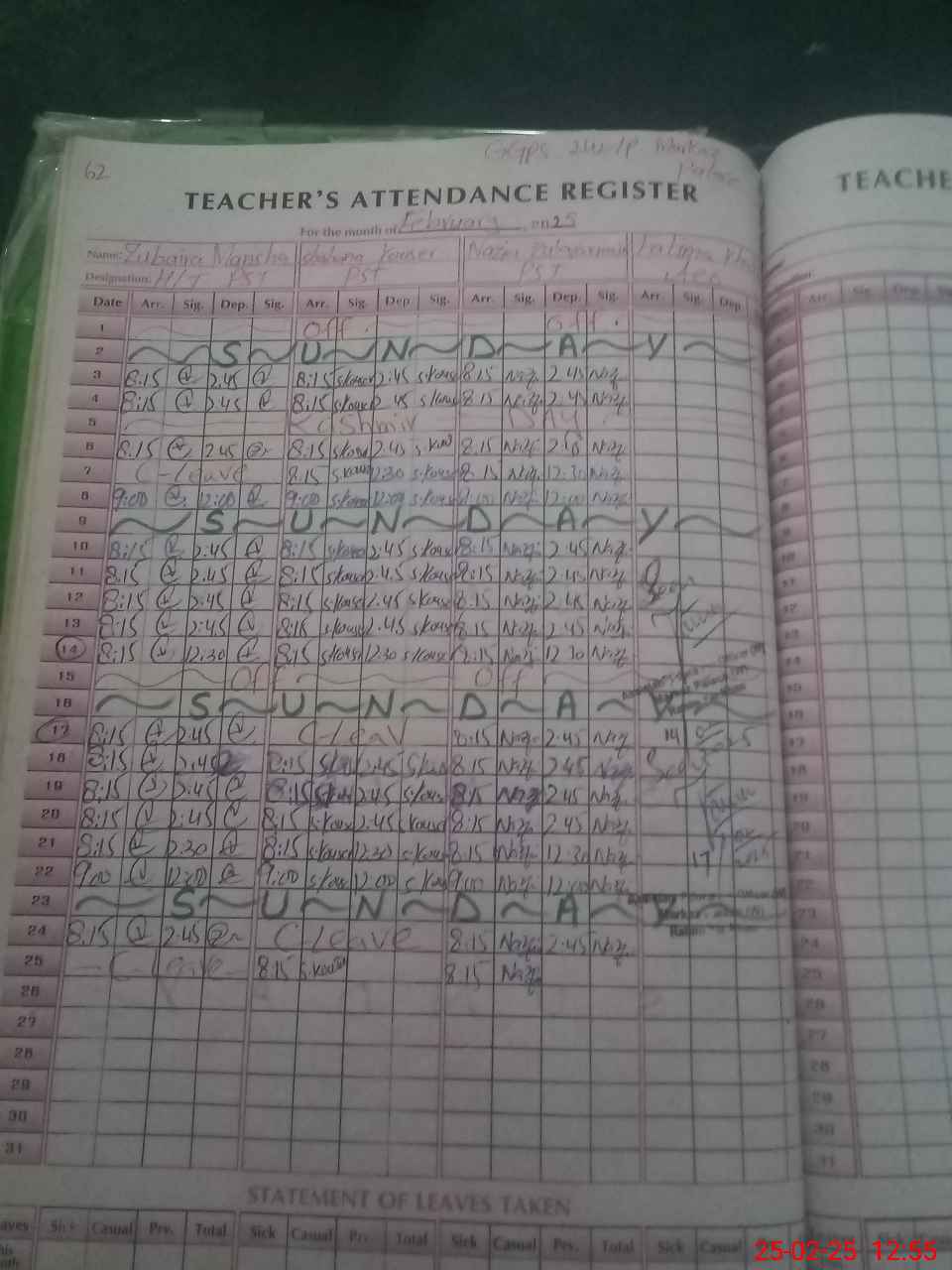 | Name: Zu**** Ma**** Designation: (School Headmaster's/Headmistress's) P S T Phone/Cell Number: 03**** |