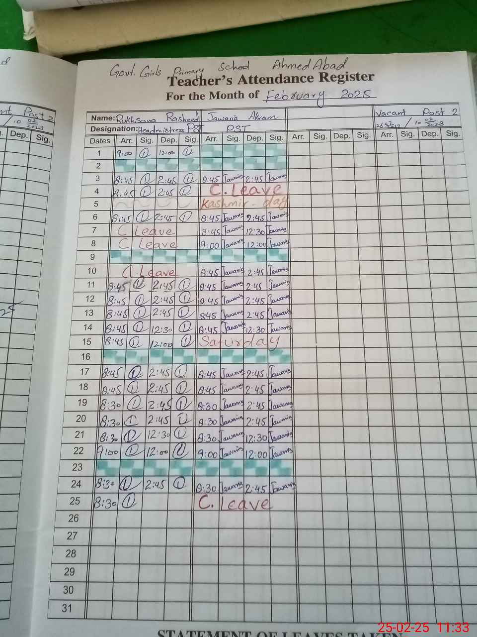 | 31**** | Ja**** Ak**** | PST | Regular | 0 | 0 | 0 | 0 | 0 | 0 | 0 | 0 | 0 | Casual |