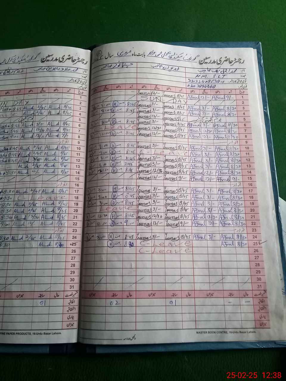 | Name: Mu**** Aj**** Designation: (School Headmaster's/Headmistress's) SST GEN Phone/Cell Number: 03**** |
