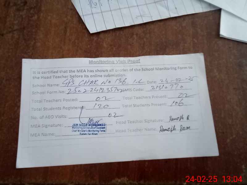 | EMIS Code: 31310770 | Name of School: GPS CHAK NO 136/1-L | |||