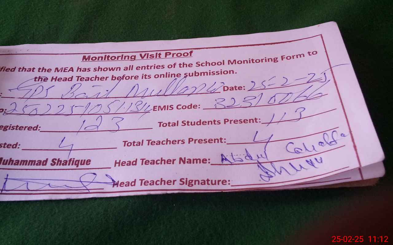 | EMIS Code: 32310066 | Name of School: GPS BAIT MULLAN WALI | |||