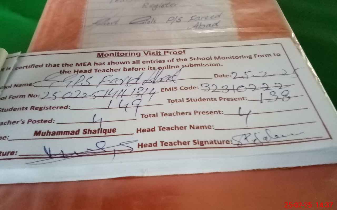 | EMIS Code: 32310222 | Name of School: GGPS FARID ABAD | |||