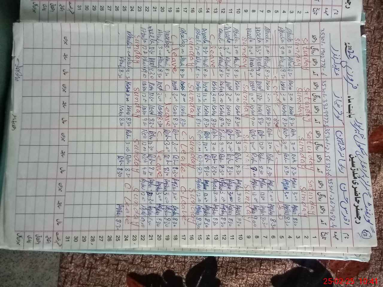 | Leave | Duty | Absent | Maternity | Medical | Ex- Pak |