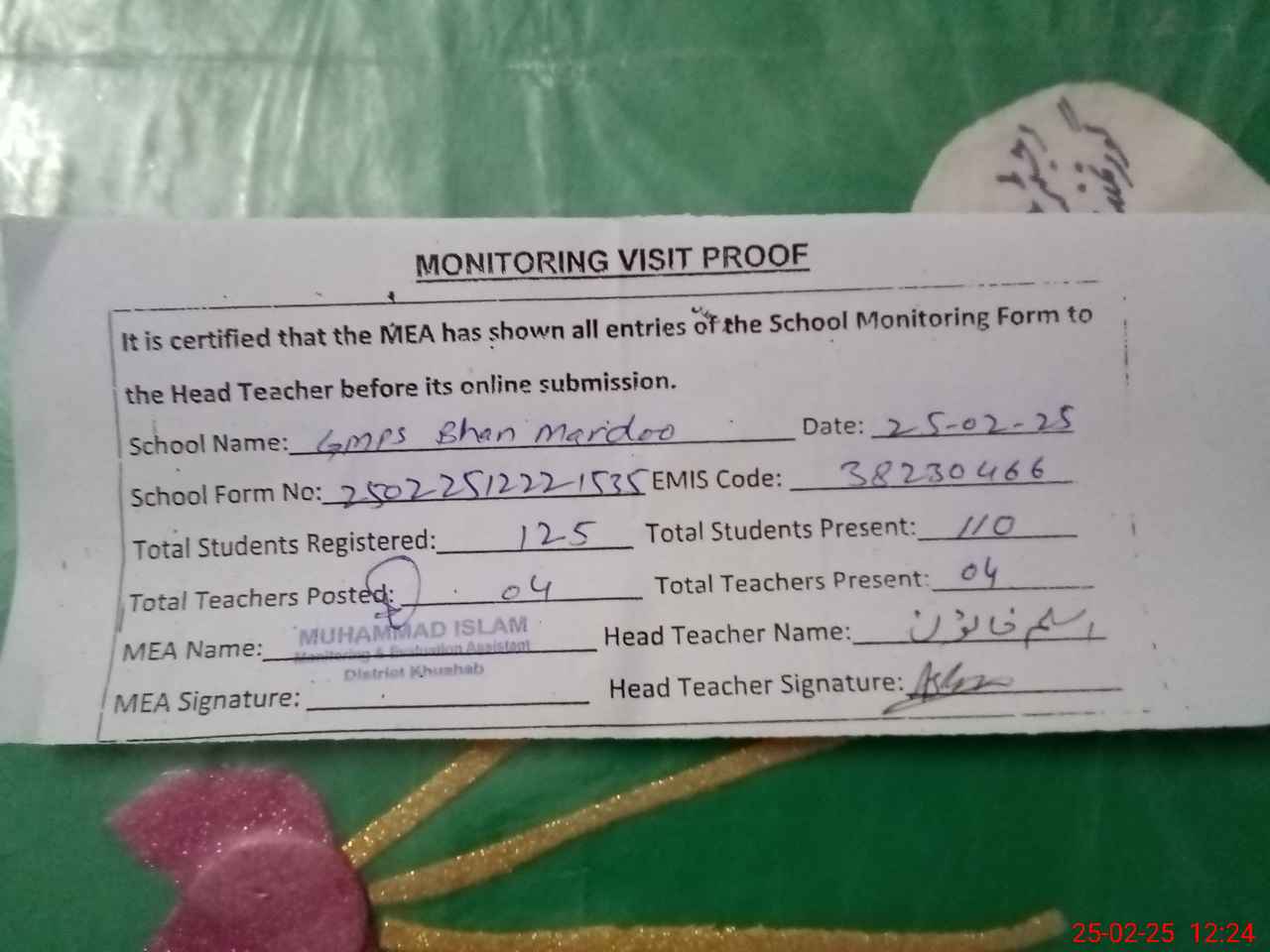 | EMIS Code: 38230466 | Name of School: GMPS BHAN MARDOO | |||