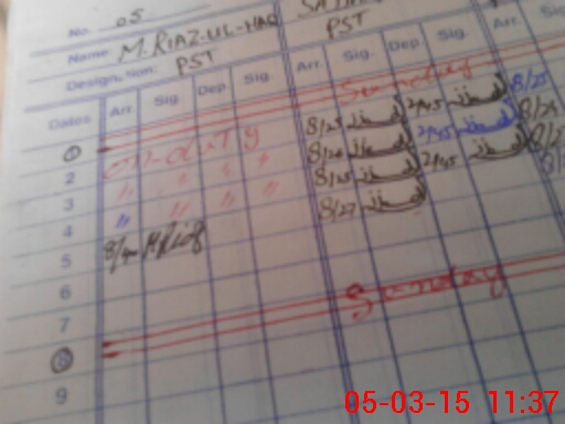 | CNIC | Full Name | Designation | R/C | Absence During Last Calender Month |