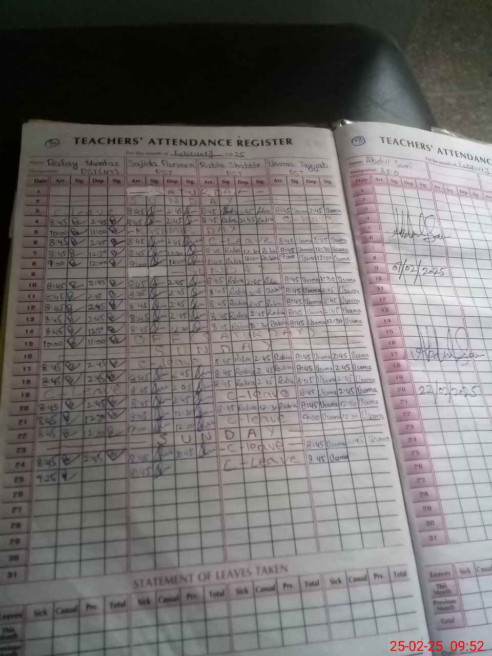| Leave | Duty | Absent | Maternity | Medical | Ex- Pak |
