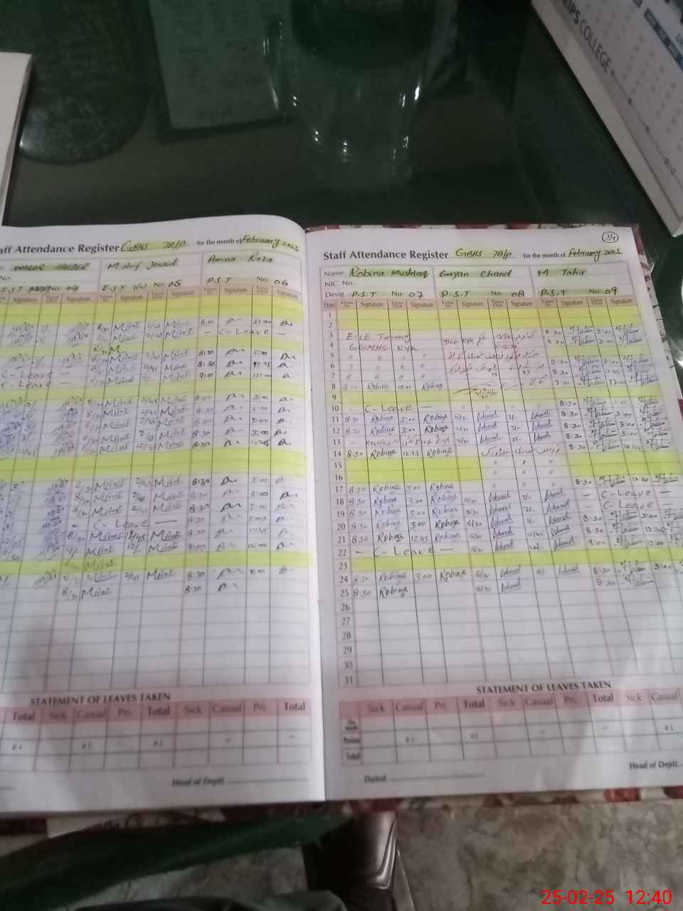 | CNIC | Full Name | Designation | R/C | Absence During Last Calender Month |