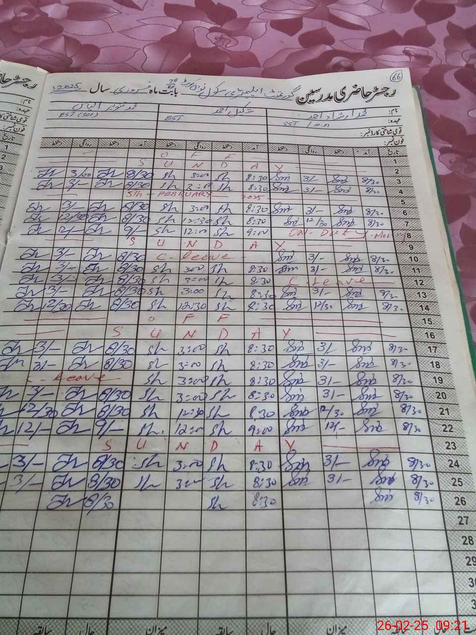 | Leave | Duty | Absent | Maternity | Medical | Ex- Pak |