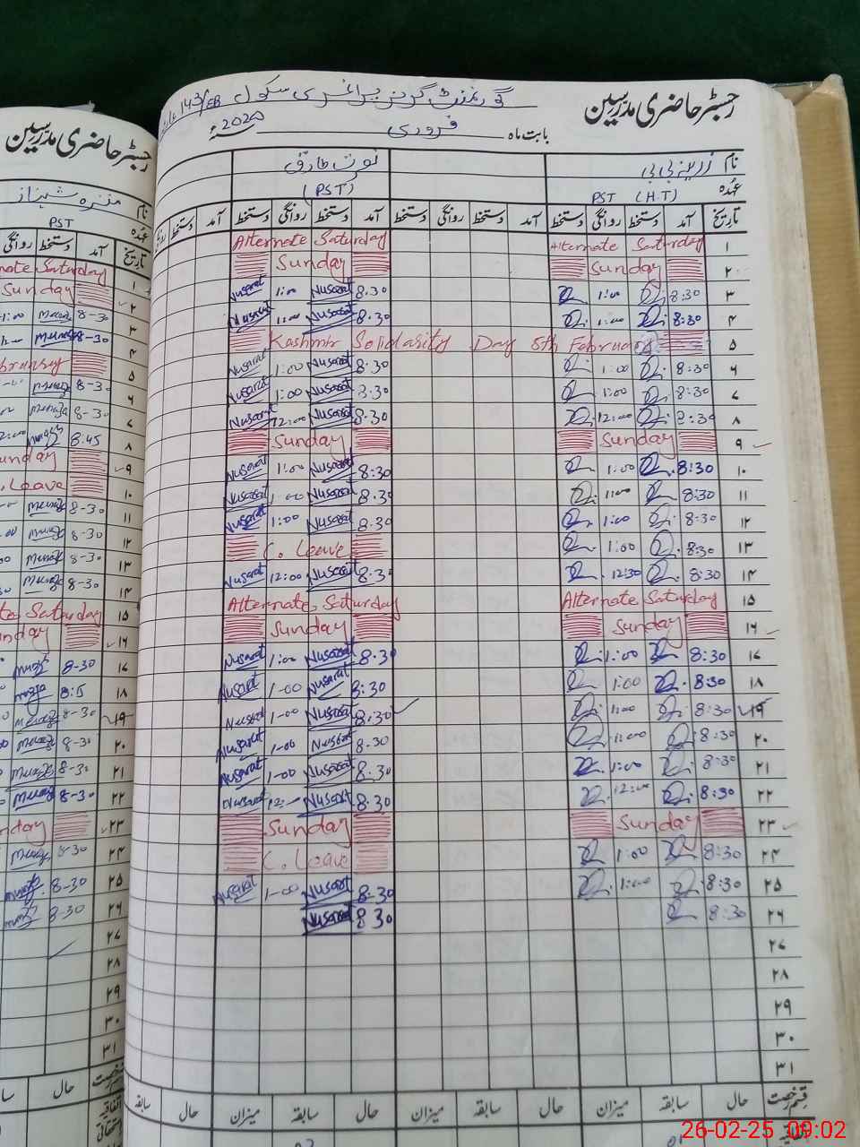 | Leave | Duty | Absent | Maternity | Medical | Ex- Pak |